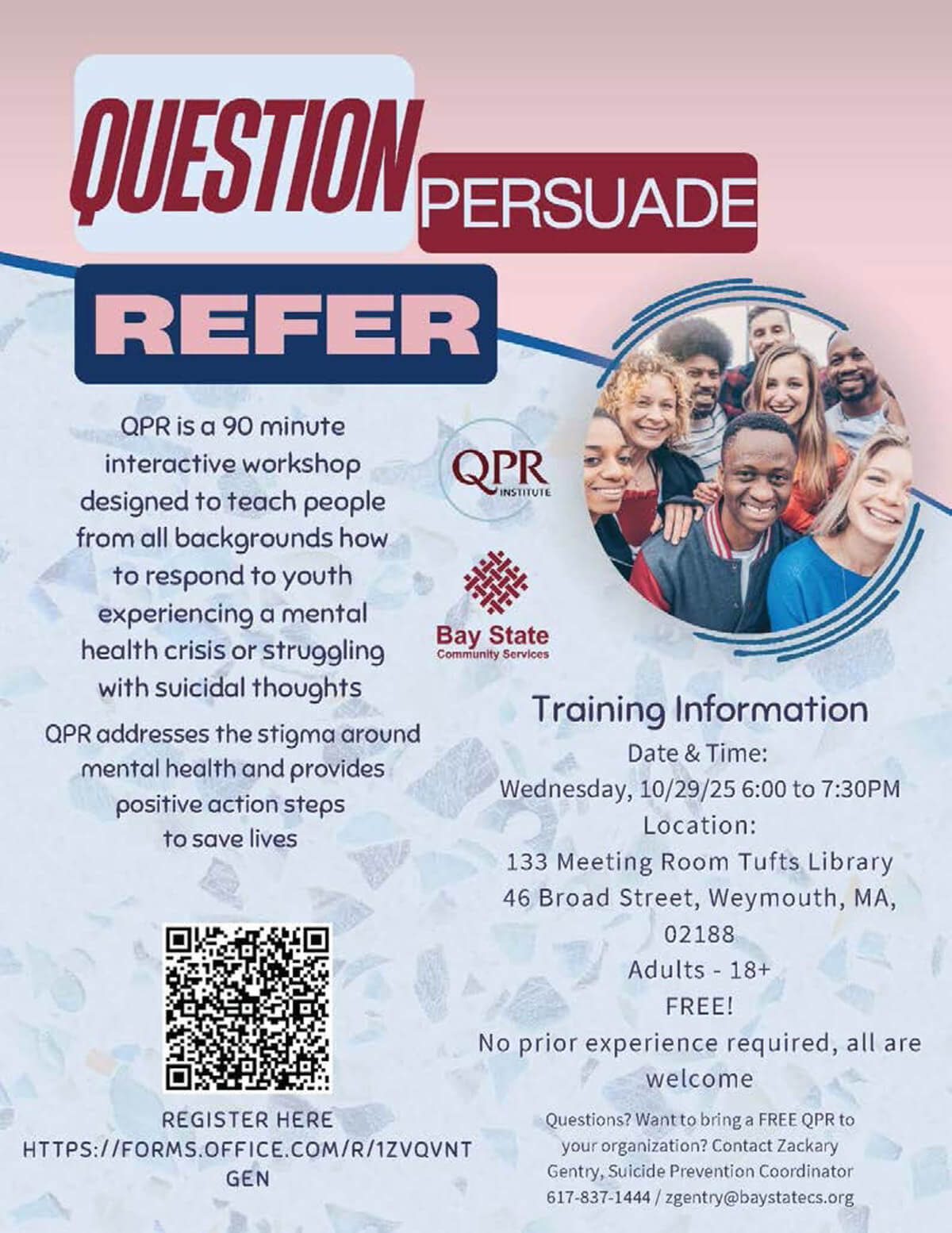 AND our upcoming Question Persuade Refer (QPR) Workshop on October 29th! Click here to register or scan the QR code below.